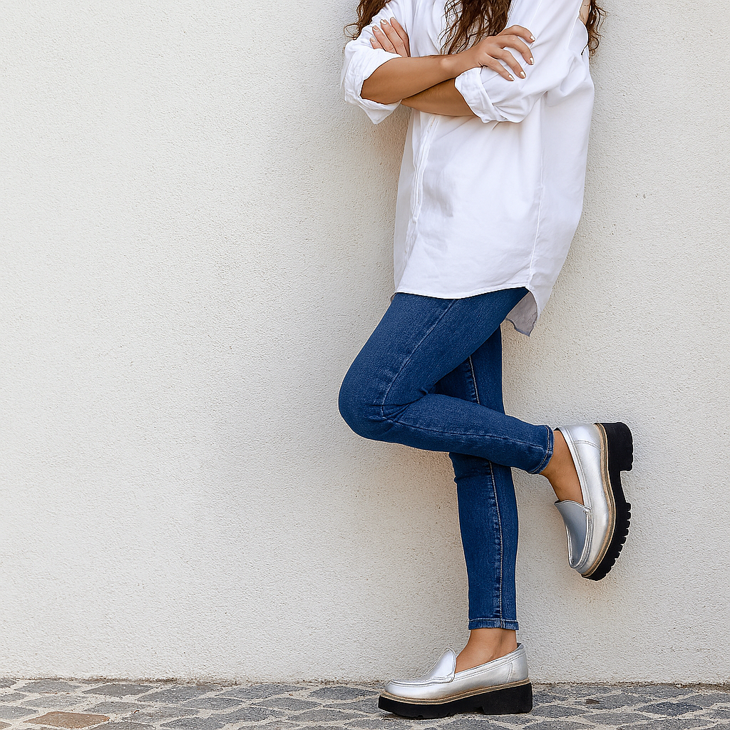 Ahorra 18%MOCASIN CUERO METALIZADO PLATA ART 063
